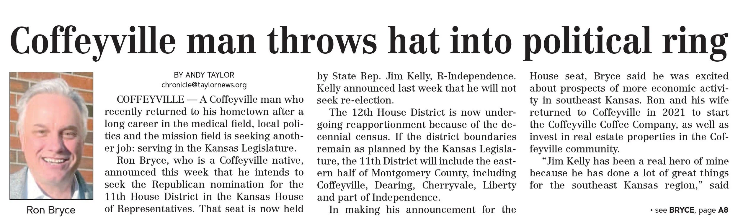 “Bryce says he’s pro-small business, supports the second amendment and says he has a very personal reason for being pro-life. As a doctor he once cared for an aborted baby that intially survived the abortion.”